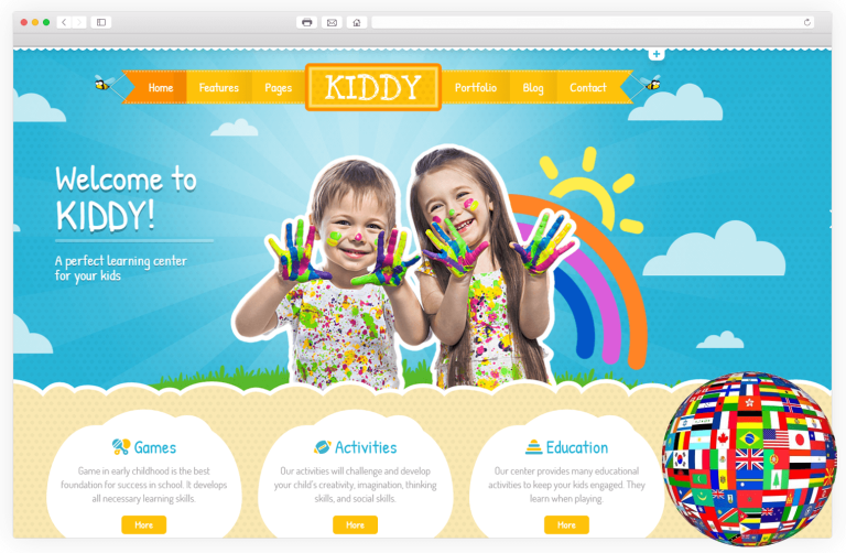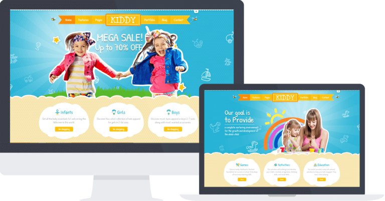 “Kiddy” provides responsive and flexible layout. All pages look identically great regardless of the device’s resolution and pixel density.