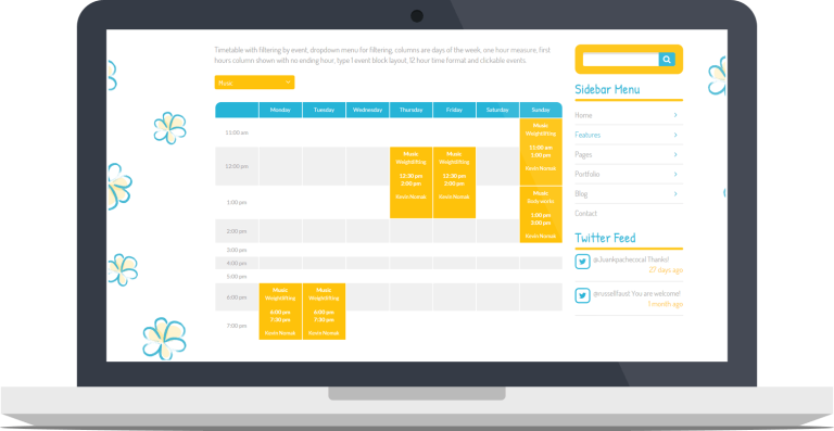 Our theme bundles a $19 value plugin which will help you build your own timetables and schedules within several minutes.