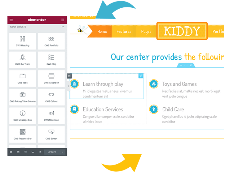 “Kiddy” comes with a very powerful Theme Options panel. With its help you will easily manage any part of your webiste: header, footer, page layouts, widget areas and much more.